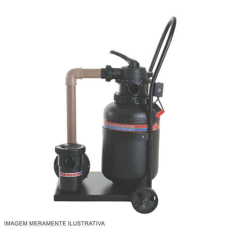 Trata-se de um carrinho equipado com um conjunto filtrante de alta vazão: um filtro série AP e uma motobomba série APP que segue com bocais de conexão para tubos soldáveis PVC de 50mm e não acompanha: adaptadores, uniões e mangueiras.