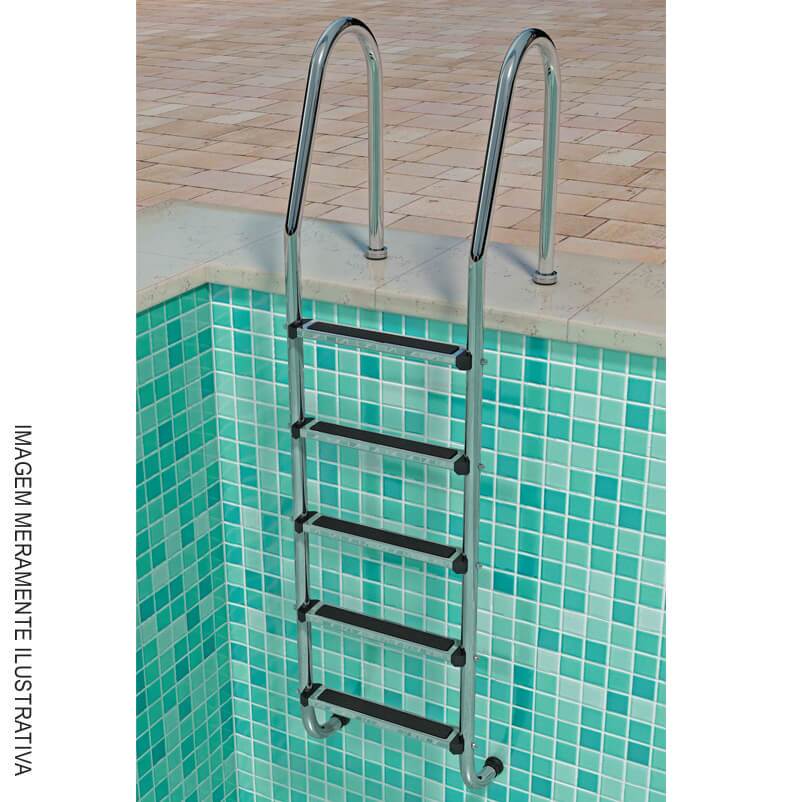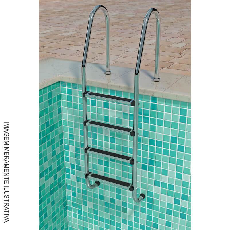 Escada em aço inox com degraus em polipropileno ou escada em aço inox com degraus em aço inox.