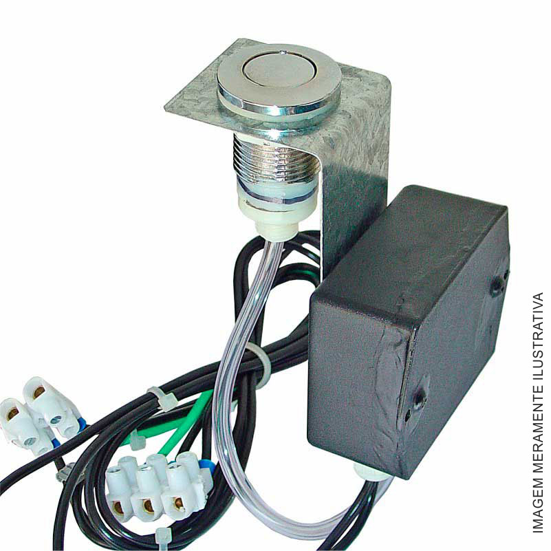 Interruptor pneumático para o acionamento da bomba. Totalmente à prova de choques elétricos. Para ser instalado na borda da banheira.