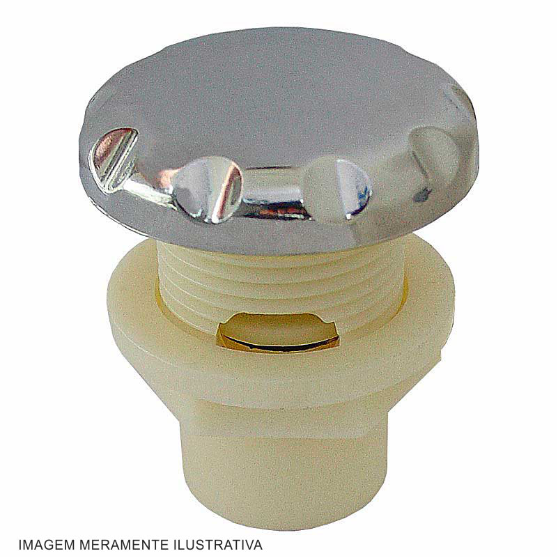 Oxigenador Banheiras e Spas produzido em ABS. Conexão para rosca de 3/4’’ externa e soldável 20mm interna. Disponíveis nas cores branca, cromado.